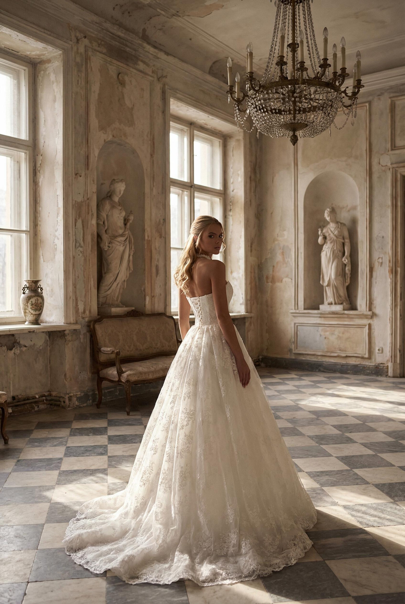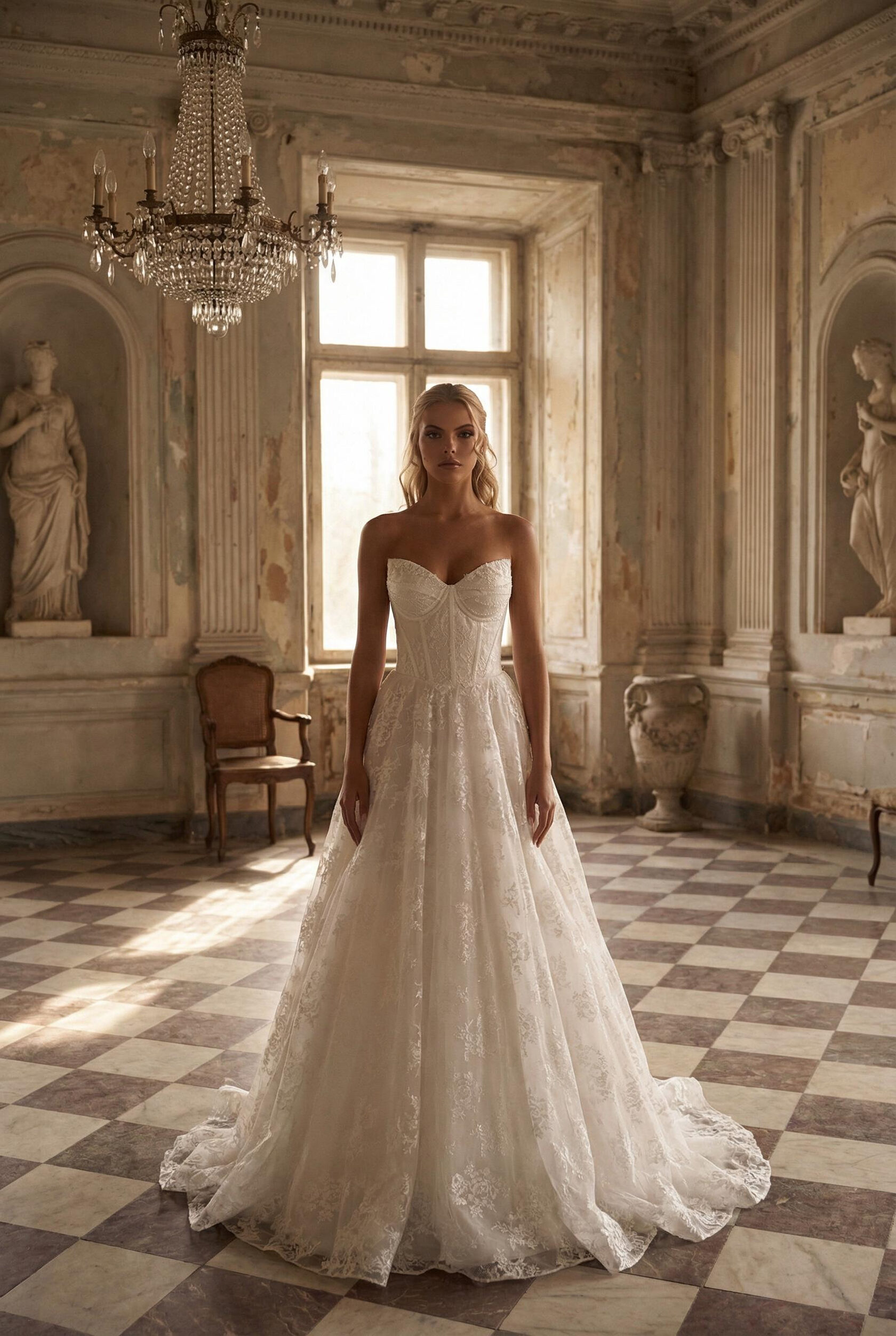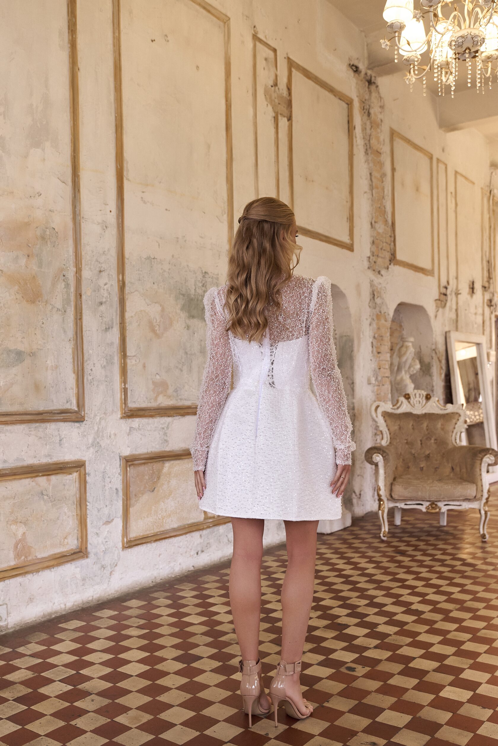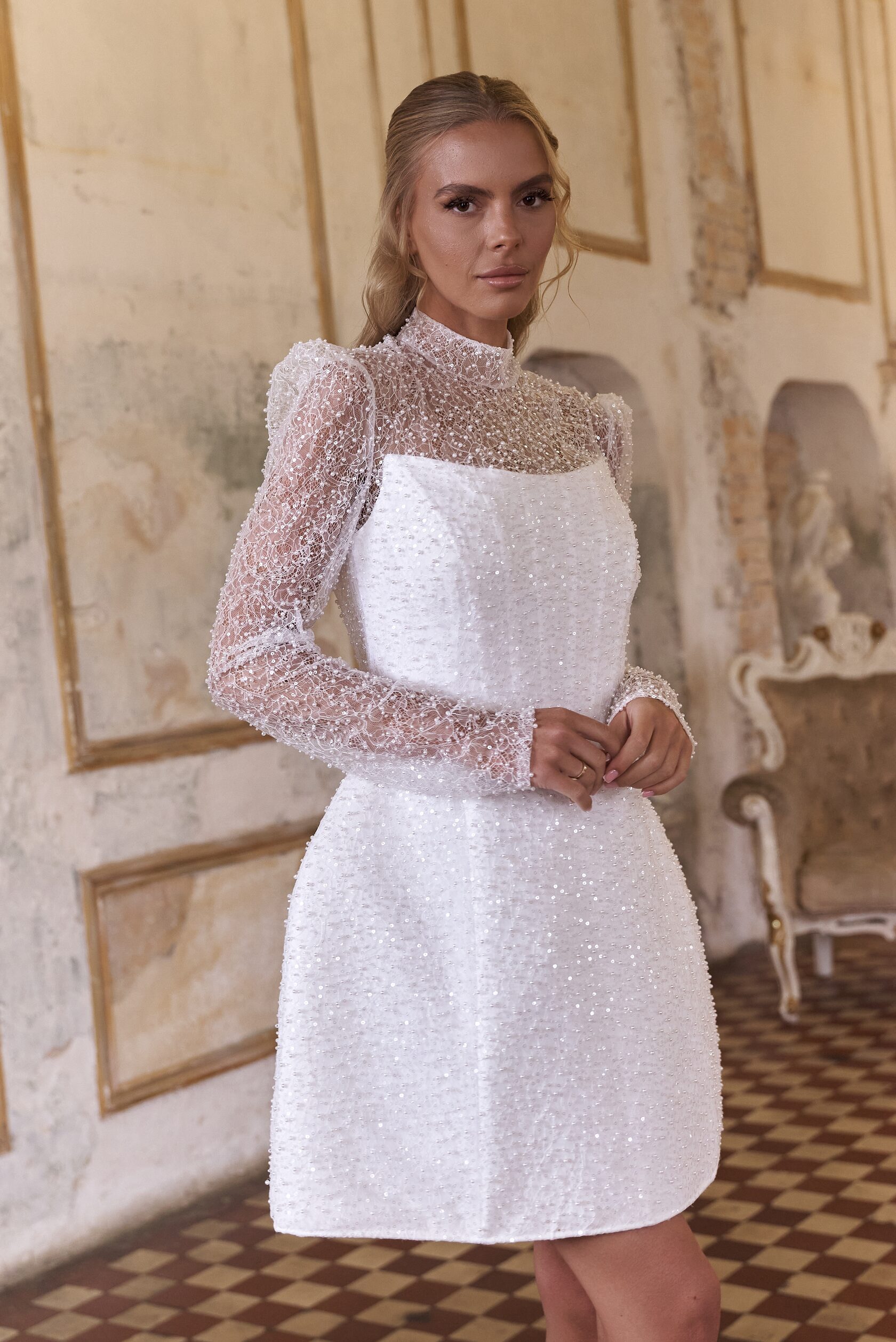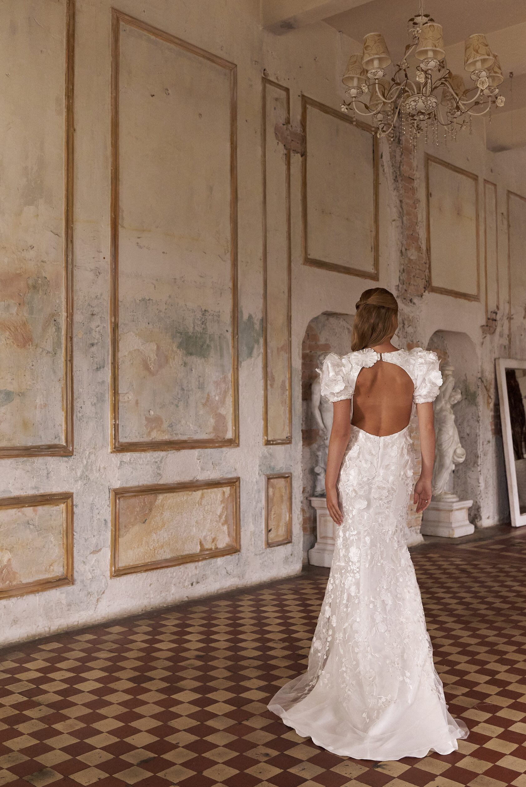 Эффектное пышное свадебное платье, разработанное с учетом главного тренда этого сезона – выразительного треугольного корсета, декорированного жемчугом. Этот роскошный наряд создан для невест, стремящихся создать запоминающийся, сказочный образ, сочетающий в себе классическую элегантность и современные тенденции.